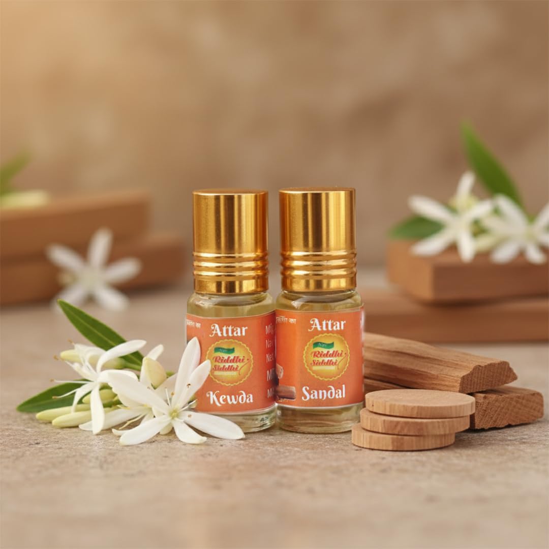 This attar roll on bottle combo pack includes two traditional floral scent oils in Kewda and Sandal variants. Each oil comes in a small glass bottle with an easy apply roll-on cap for smooth and controlled use. The roll-on design helps avoid spills and allows direct application on pulse points. Compact in size, these bottles are easy to carry in a pocket, purse, or travel bag. Suitable for personal use, this combo pack is ideal for everyday wear at home, office, or while travelling. The glass bottles help keep the oil secure and fresh for regular use.
